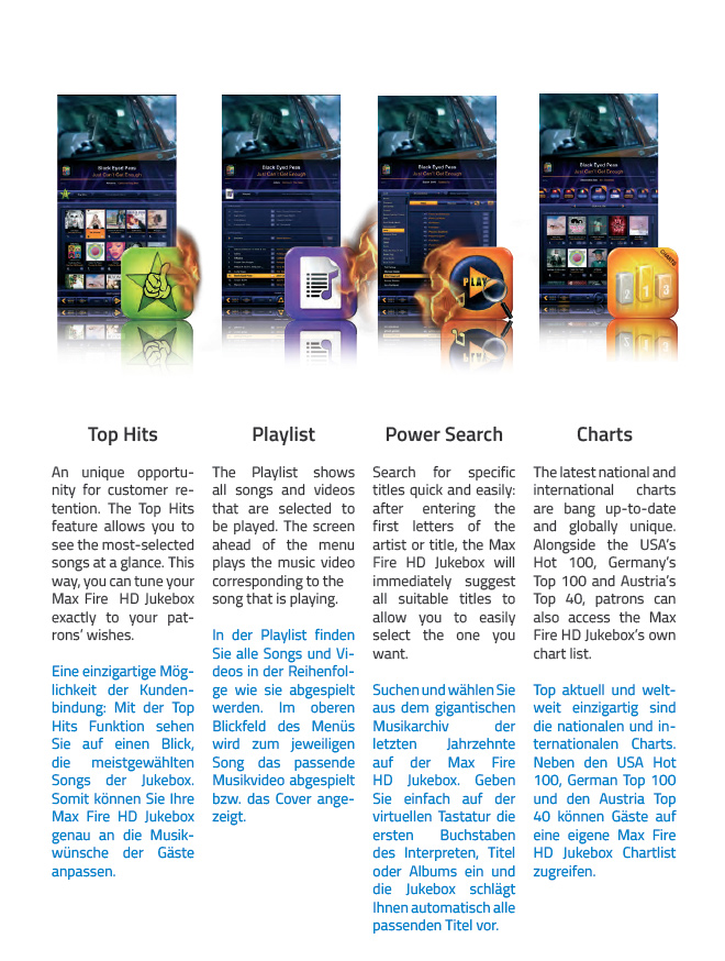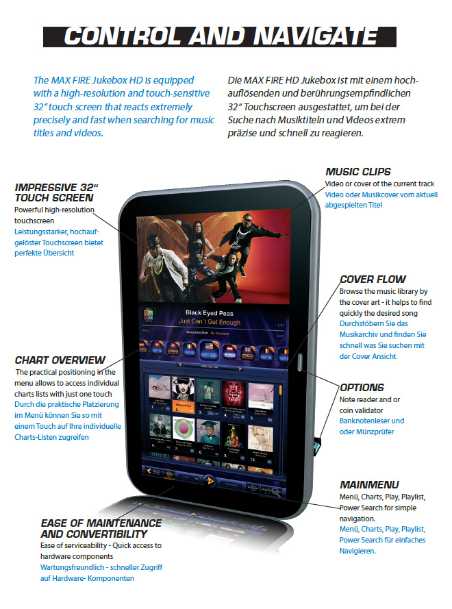 MAX FIRE Jukebox. Das aktuelle Outfit bietet noch mehr Überblick, um alle gewünschten Funktionen gezielt und schnell aufzurufen.